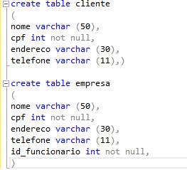 Neste passo iremos criar as tabelas do banco, ou seja os filtros de dados, para essa função usaremos o código create table (nome da tabela).